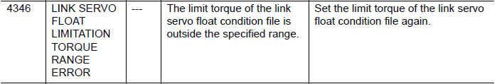 NXC100 ALARM CODE 4346 LINK SERVO FLOAT LIMITATION TORQUE RANGE ERROR February 24, 2026 13:47 Updated Comments 0 comments Please sign in to leave a comment.
