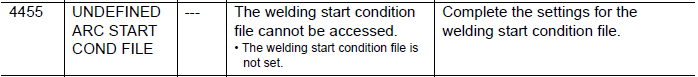 NXC100 ALARM CODE 4455 UNDEFINED ARC START CONDITION FILE February 25, 2026 20:32 Updated Comments 0 comments Please sign in to leave a comment.