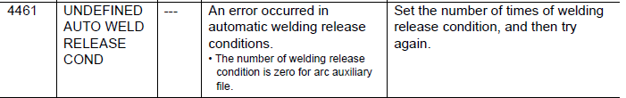NXC100 ALARM CODE 4461 UNDEFINED AUTO WELD RELEASE CONDITION February 26, 2026 13:22 Updated Comments 0 comments Please sign in to leave a comment.