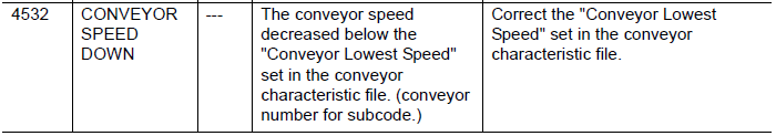 NXC100 ALARM CODE 4532 CONVEYOR SPEED DOWN March 02, 2026 19:31 Updated Comments 0 comments Please sign in to leave a comment.